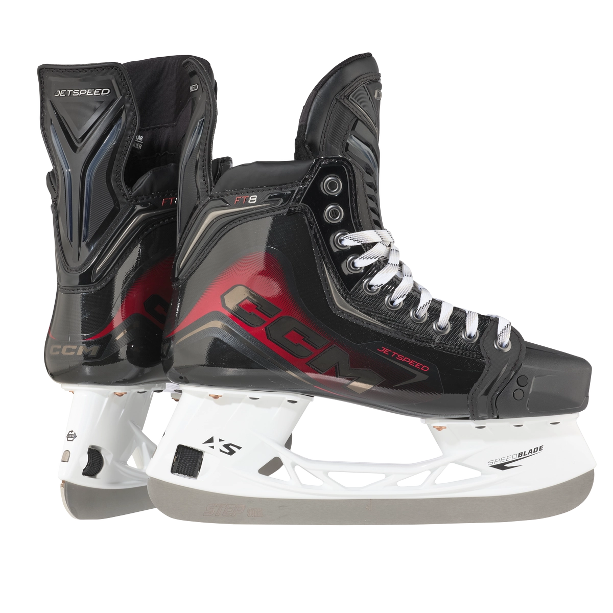 Коньки Jetspeed FT8 с монолитным ботинком из композита RocketFrame, обладающие большинством технологий топовой модели, станут отличным выбором для профессиональных хоккеистов.
