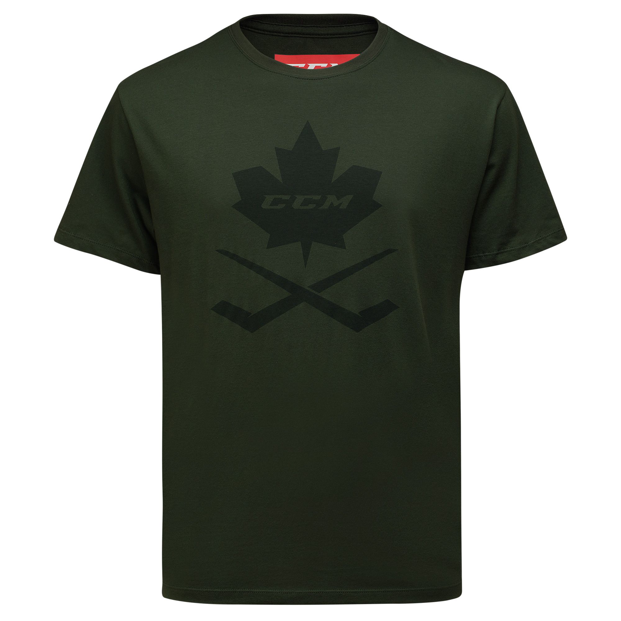 Очень мягкая футболка расслабленного кроя. Спереди отпечатан логотип ССМ HOCKEY в виде кленового листа.