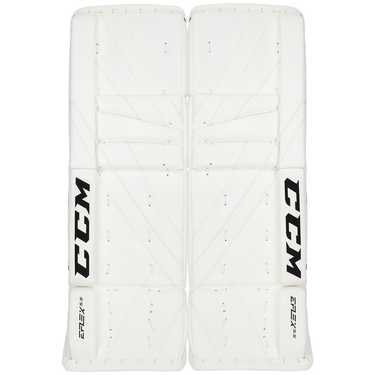 Лицевая сторона щитков имеет совершенно новую формованную конструкцию в области колена, которая обеспечивает большую стабильность, позволяет лучше контролировать и управлять отскоком. На всей площади EFlex E5.5 используется фирменный синтетический материал CCM “SpeedSkin”, который выполняет как декоративную, так и эксплуатационную функции, предлагая максимально легкие скольжение и перекаты.